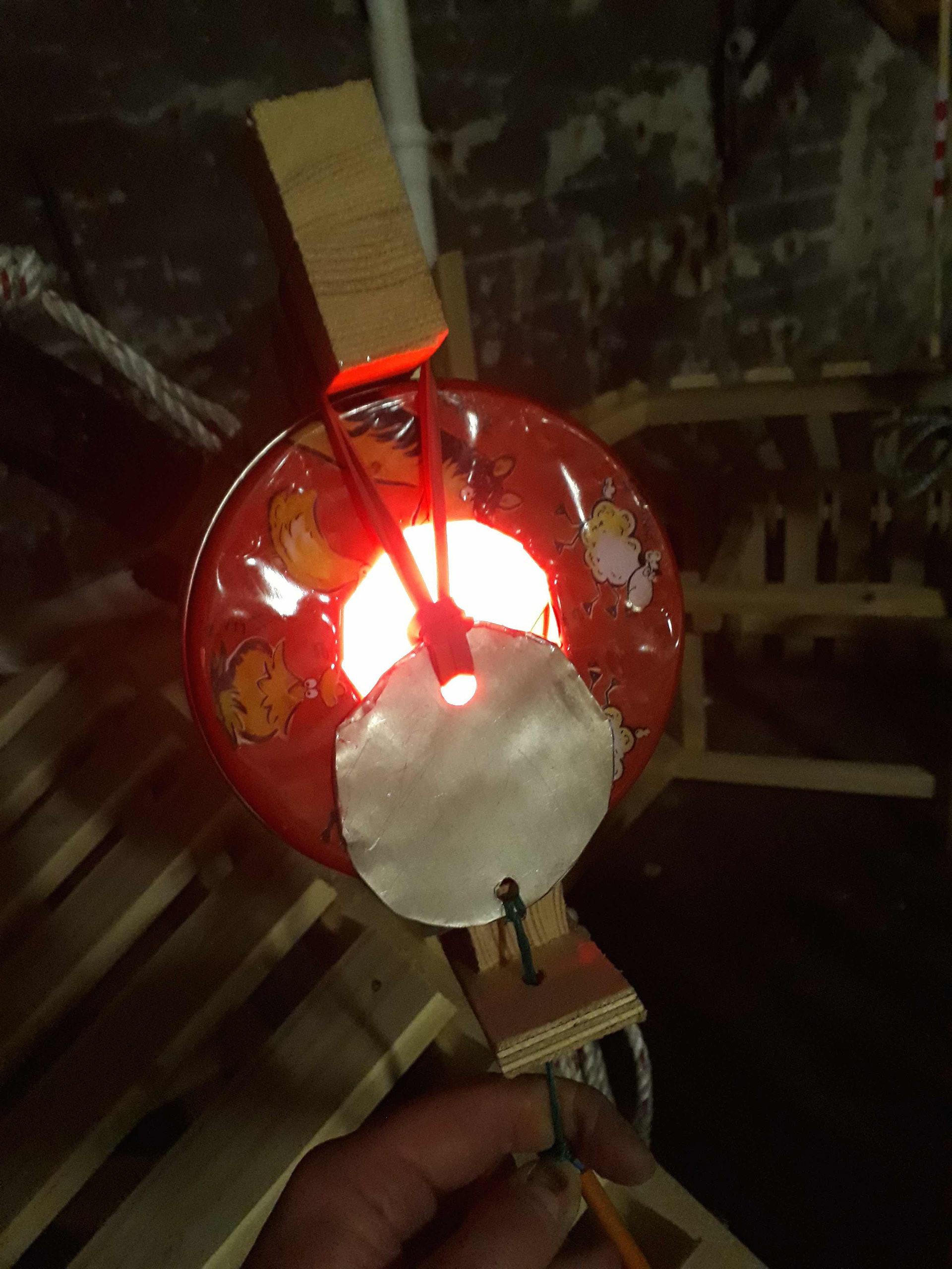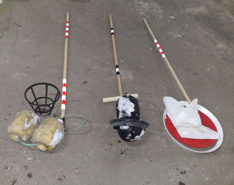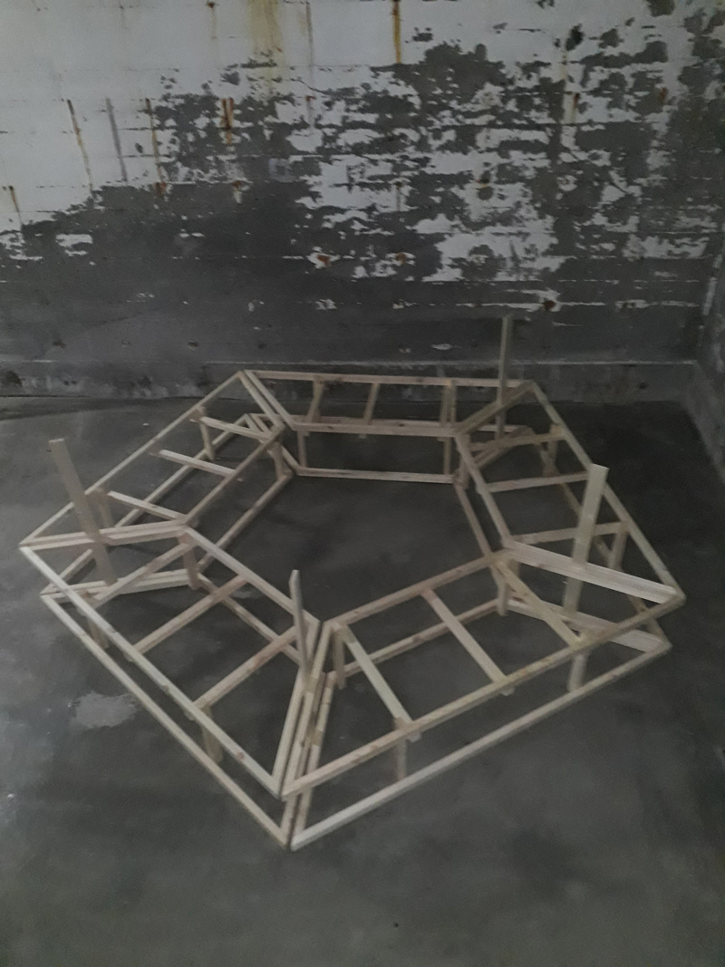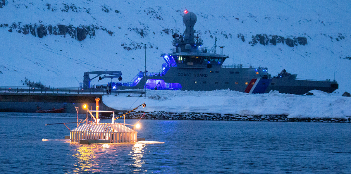 Skulpturen «Water Vessel Registrator 5» (2019) er bygget av funne gjenstander på Island. En pentagonal struktur har armer som kobler fri flytende elementer til seg, og enkle mekaniske deler gjør at lys blinker i takt med havets vugging.
